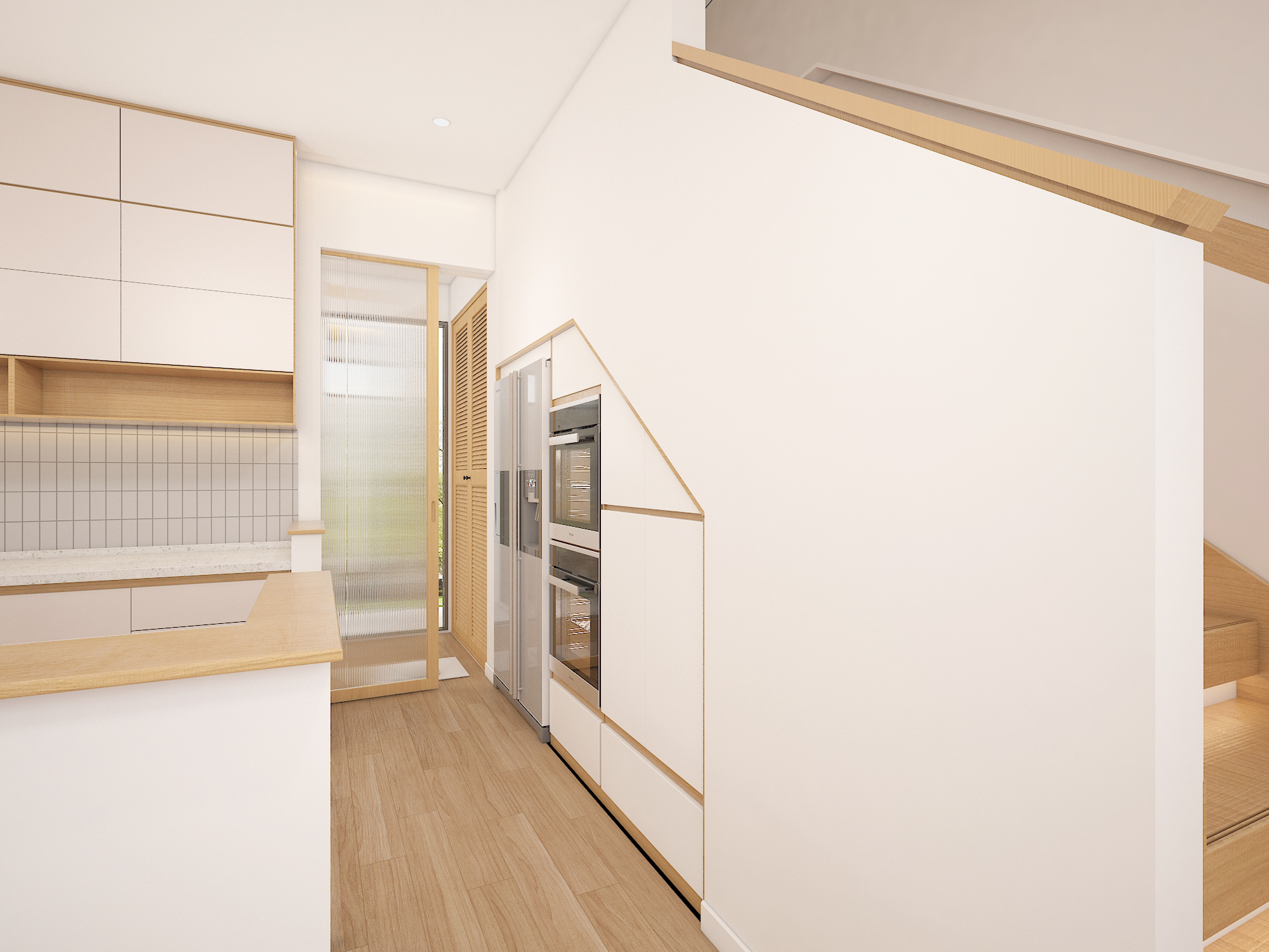 Thiết kế một không gian mở cho phòng khách và phòng bếp là ý tưởng thông minh giúp tối ưu diện tích và đảm bảo sự thông thoáng cho căn nhà. Tạo ra một không gian hoàn hảo bằng cách thiết kế nội thất nhà nhỏ kiểu Nhật với những tone màu trung tính: trắng, ghi, nâu…