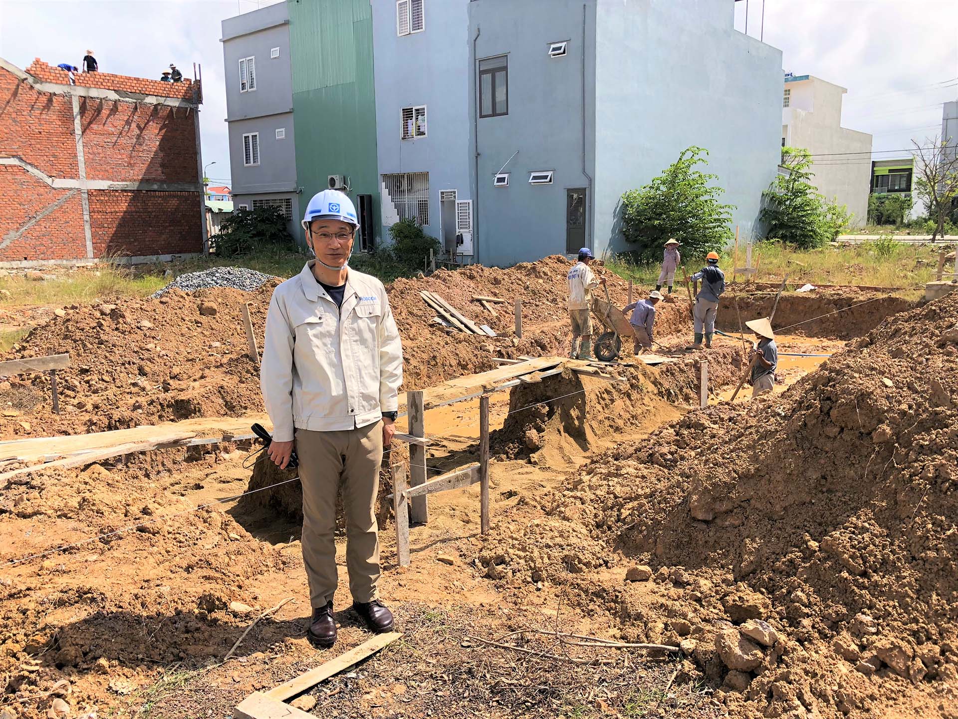 Đại diện công ty Xây dựng HOSODA, Kiến trúc sư trưởng Toshio Saito tới thăm và làm việc tại công trường nhà mẫu MIRAI HOUSE, Đà Nẵng (11.2018)
