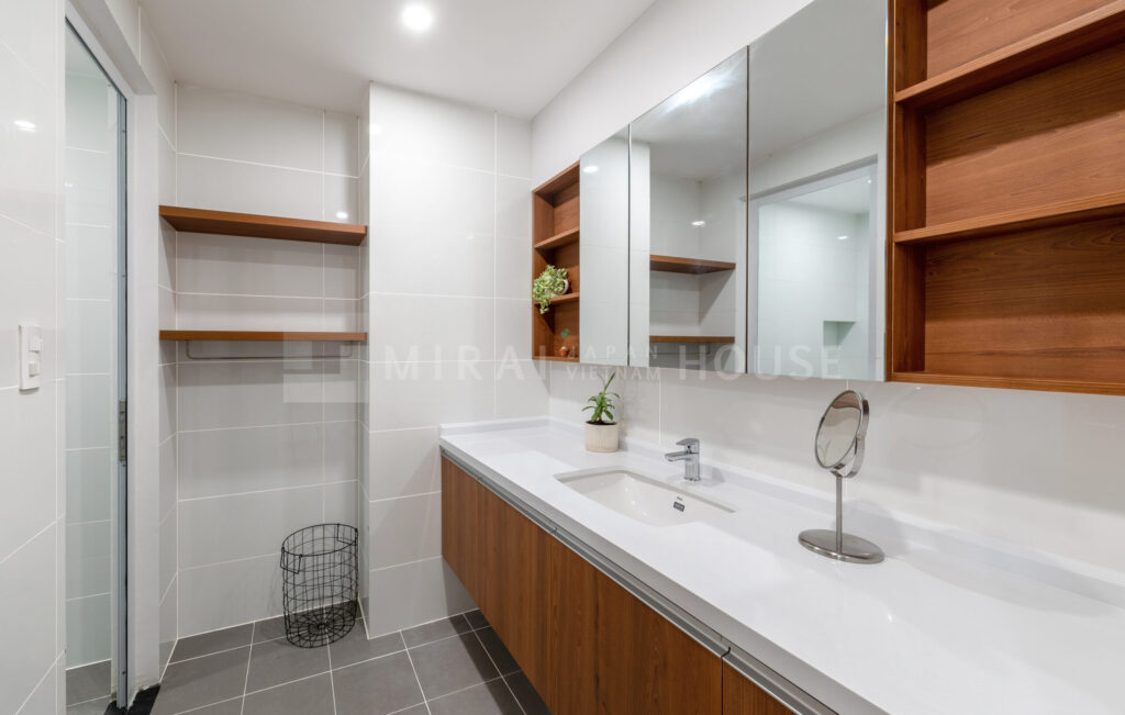 Không gian bếp và phòng vệ sinh thường được nhiều gia chủ kết hợp trong cùng một không gian nhằm tiết kiệm diện tích cũng như dễ dàng sử dụng giữa hai không gian.